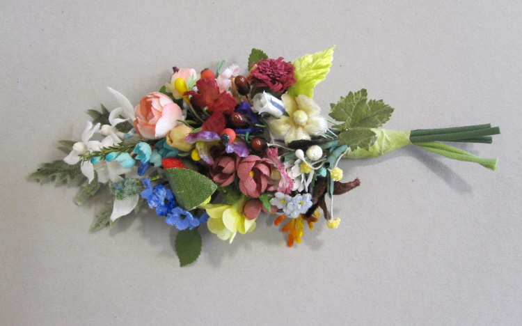 Ein gemischtes Sträußchen, das aus mindestens 10 Blüten aus nach alter Tradition neu gemachten und alten Blumen besteht. Alle sind etwas verschieden.